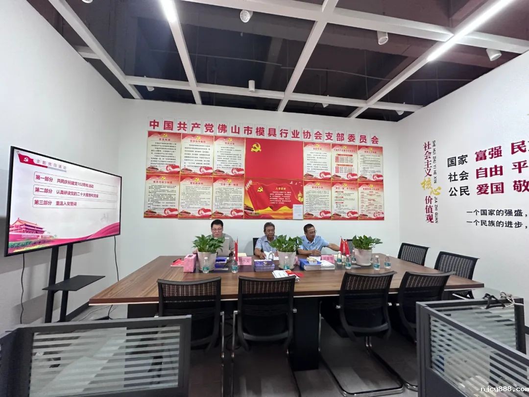 7月1日上午,中共佛山市模具行业支部委员会召开“学思践悟开新局,竞标争先建新功”七一主题党日活动及庆祝中国共产党成立102周年,共同庆祝党的生日,激励广大党员进一步统一思想、学习先进、砥砺奋进。会议由党支部书记饶学高同志主持,党员周富强同志、刘水义同志参加。