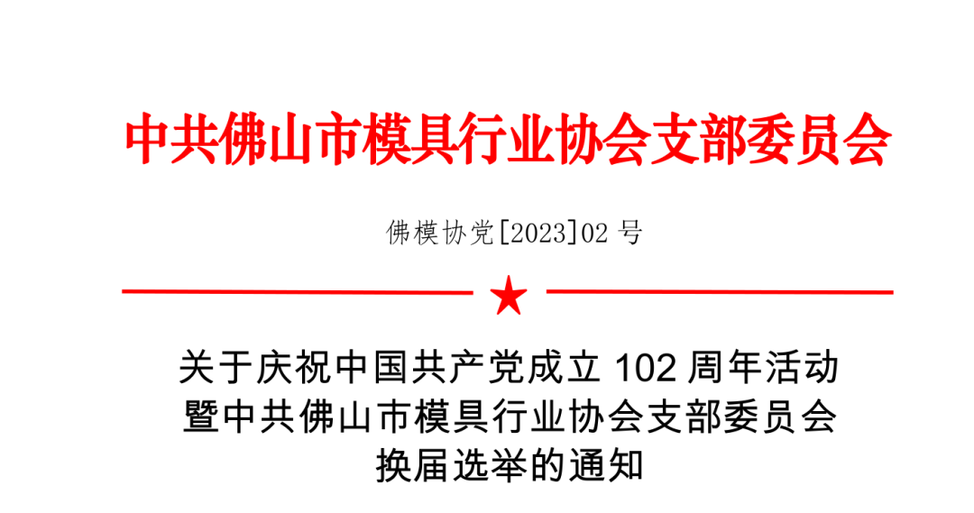 近日协会将根据《中国共产党章程》、《中国共产党基层组织选举工作条例》等有关规定,以及《中共佛山市社会组织委员会关于同意中共18luck最新支部委员会换届选举的批复》(佛社组〔2023〕9 号)要求,筹备党支部换届选举事项,并将于7月1日召开“学思践悟开新局,竟标争先建新功”七一主题党日活动及庆祝中国共产党成立102周年,7月6日召开中共18luck最新支部委员会换届选举会议。