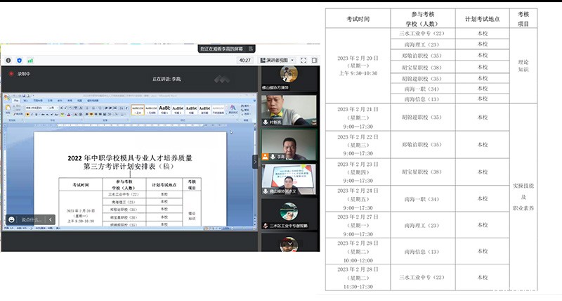 会议开始,佛山市教育局、顺德区职业教育发展促进会岑倩映老师介绍第三方考核评价背景情况,对2022年考核工作提出了要求和部署,并对协会这几年来第三方考核工作给予了高度的评价和认可。