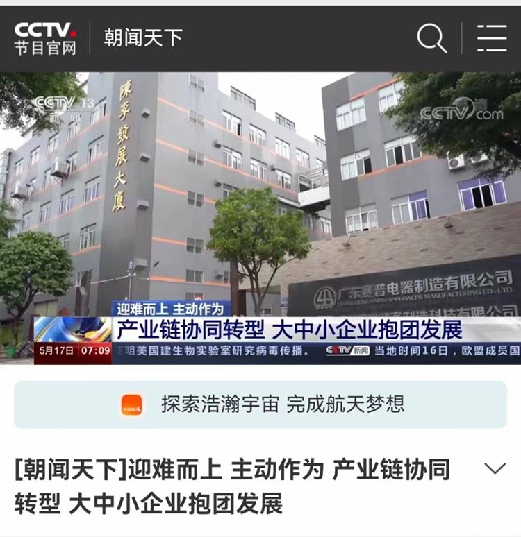 5月17日,18luck最新会员单位 广东赛普电器制造有限公司 亮相央视节目【朝闻天下】时政要闻,内容报道写道:赛普电器是一家生产洗碗机配套零件的工厂,不久前受疫情影响,大量的产品生产出来无法交付,导致库存积压严重、经营困难。这时,一家家电龙头企业为他们提供了一套云端数控平台。