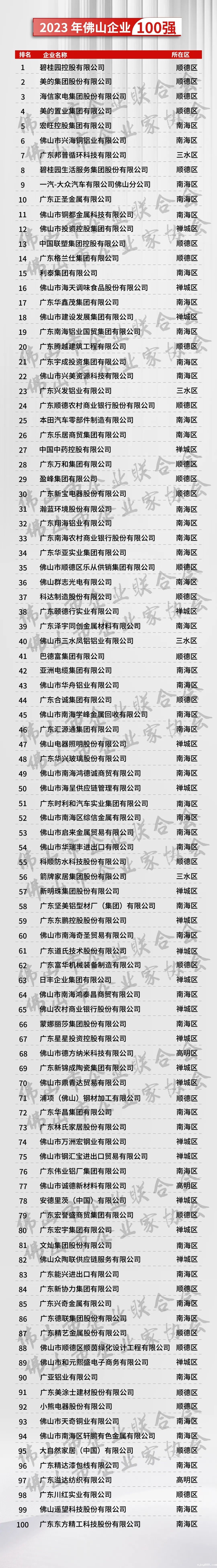 佛山企业100强