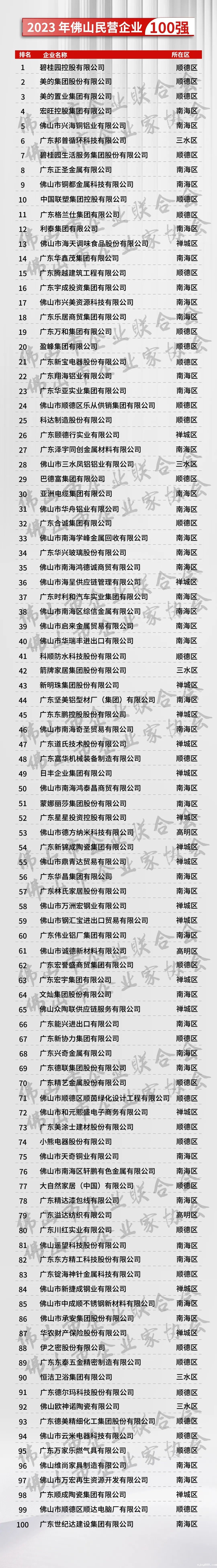 佛山民营企业100强