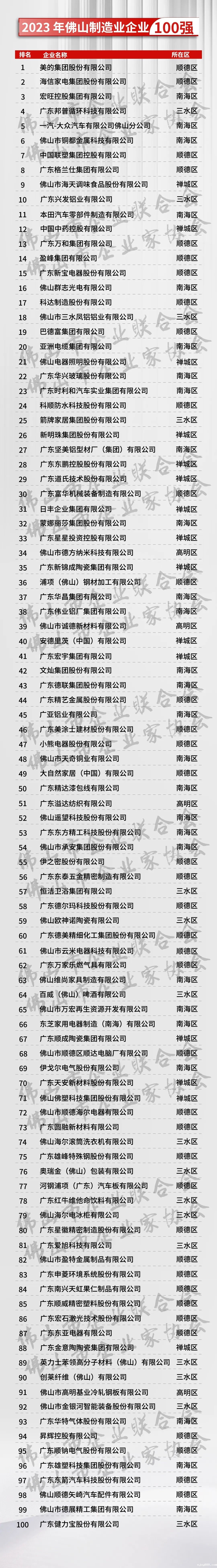 佛山制造业企业100强